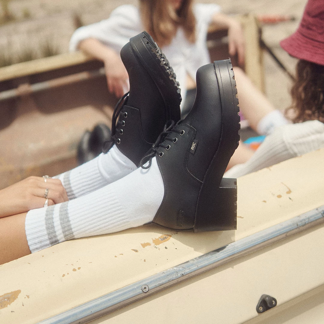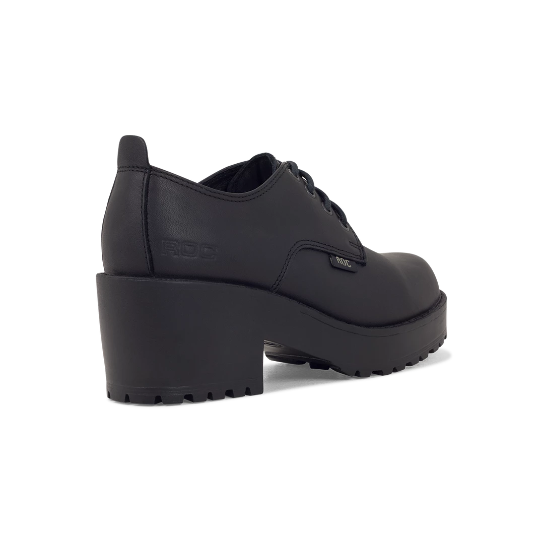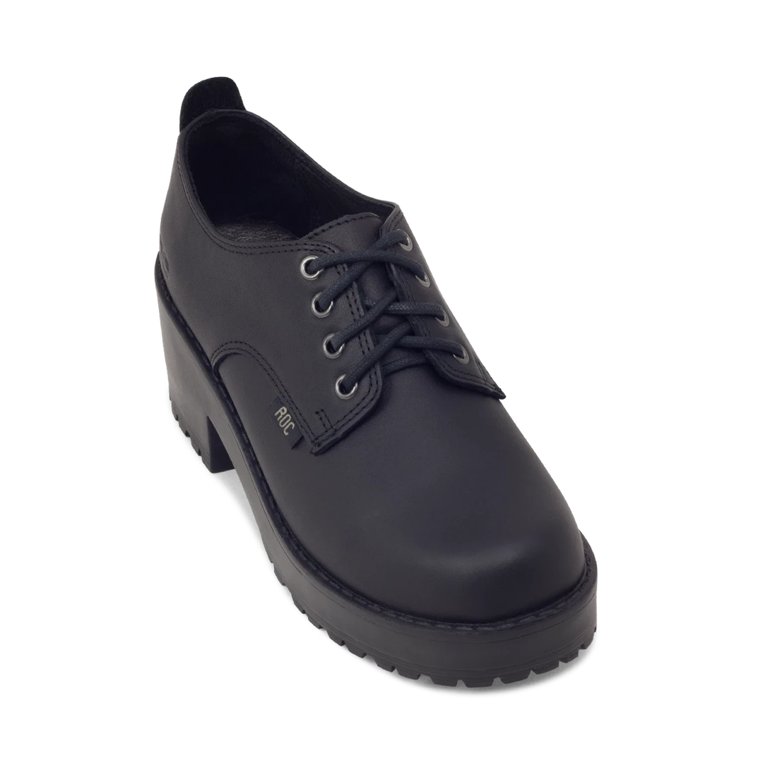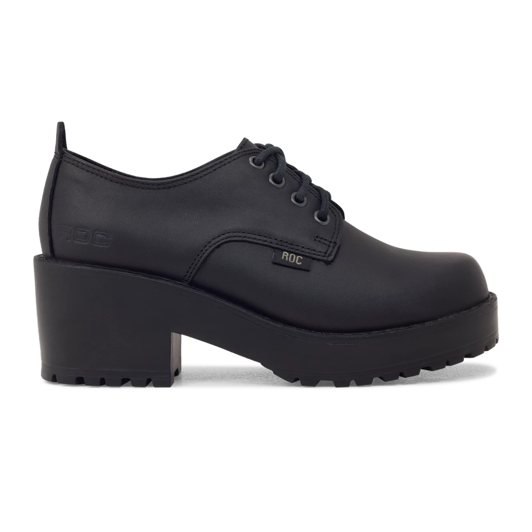 Flexible full-grain leather upper and lining offering maximum durability and breathability. Lightweight, long-wearing PU outsole. Mid-heel lace-up with a cleat profile.