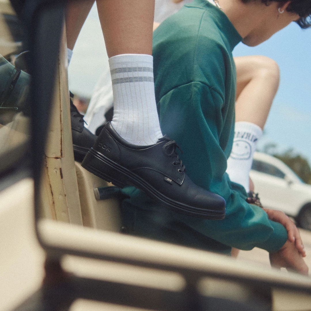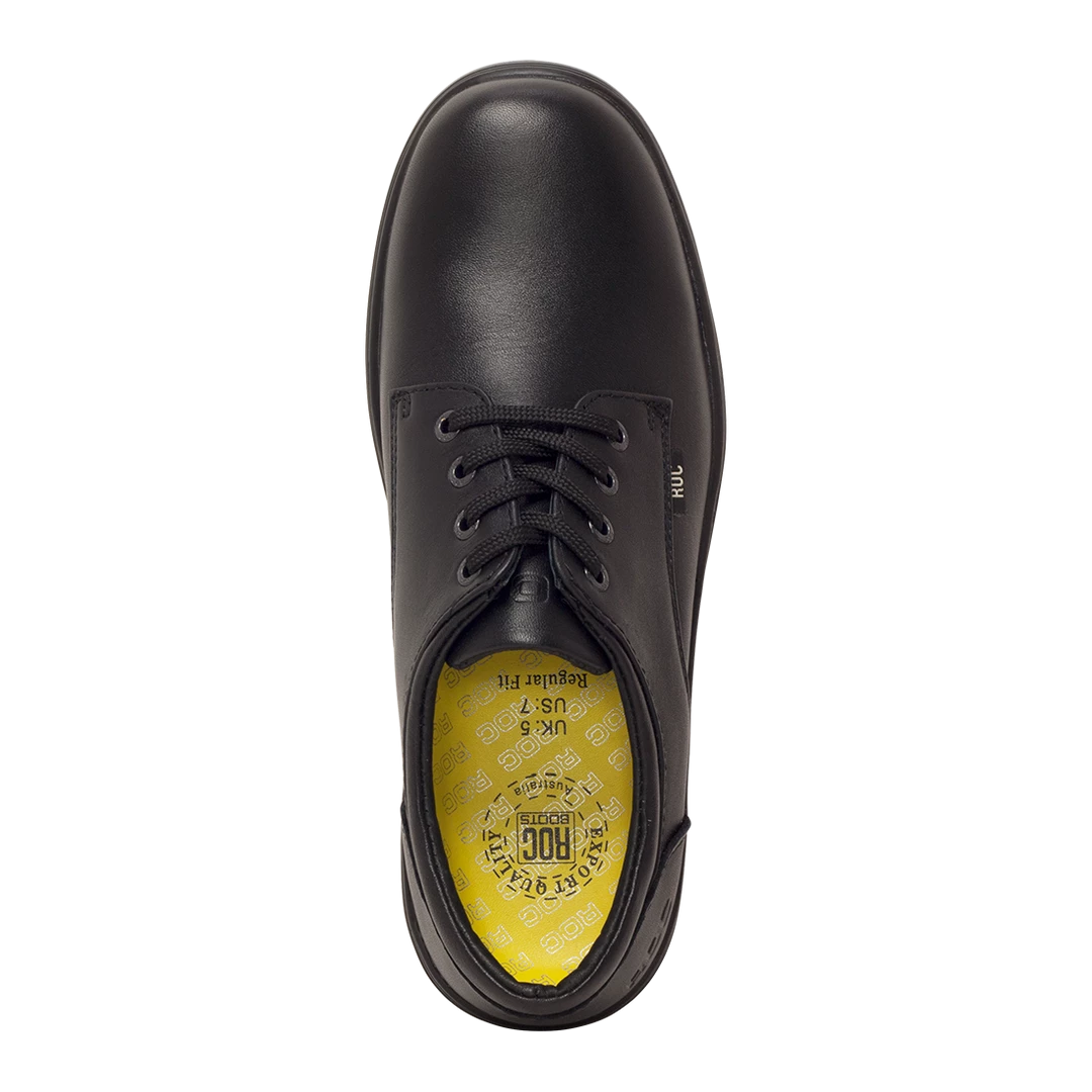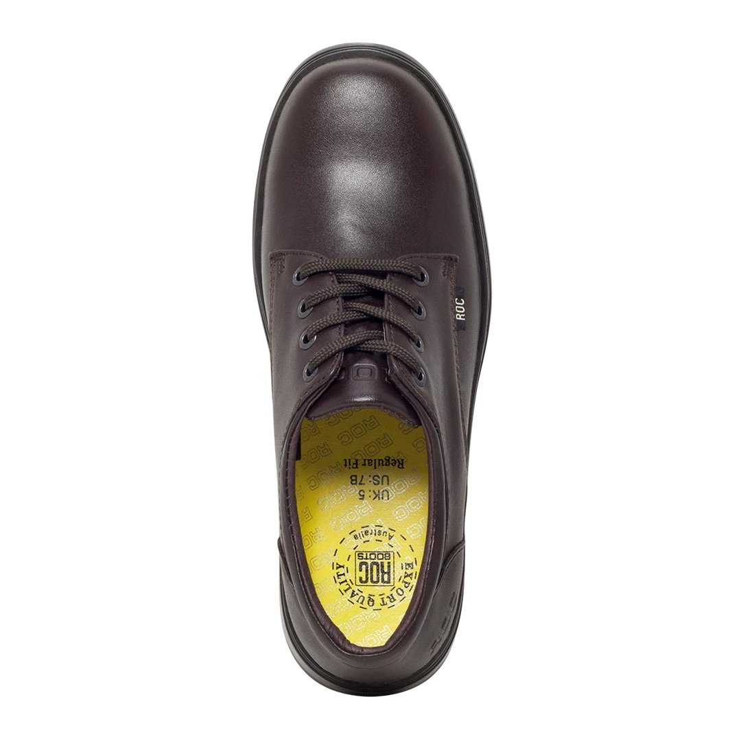A traditional 4 hole lace-up with a padded collar for extra support and comfort. It offers maximum durability and breathability as well as flexibility. Full-grain leather upper and lining. Lightweight, long-wearing PU outsole.