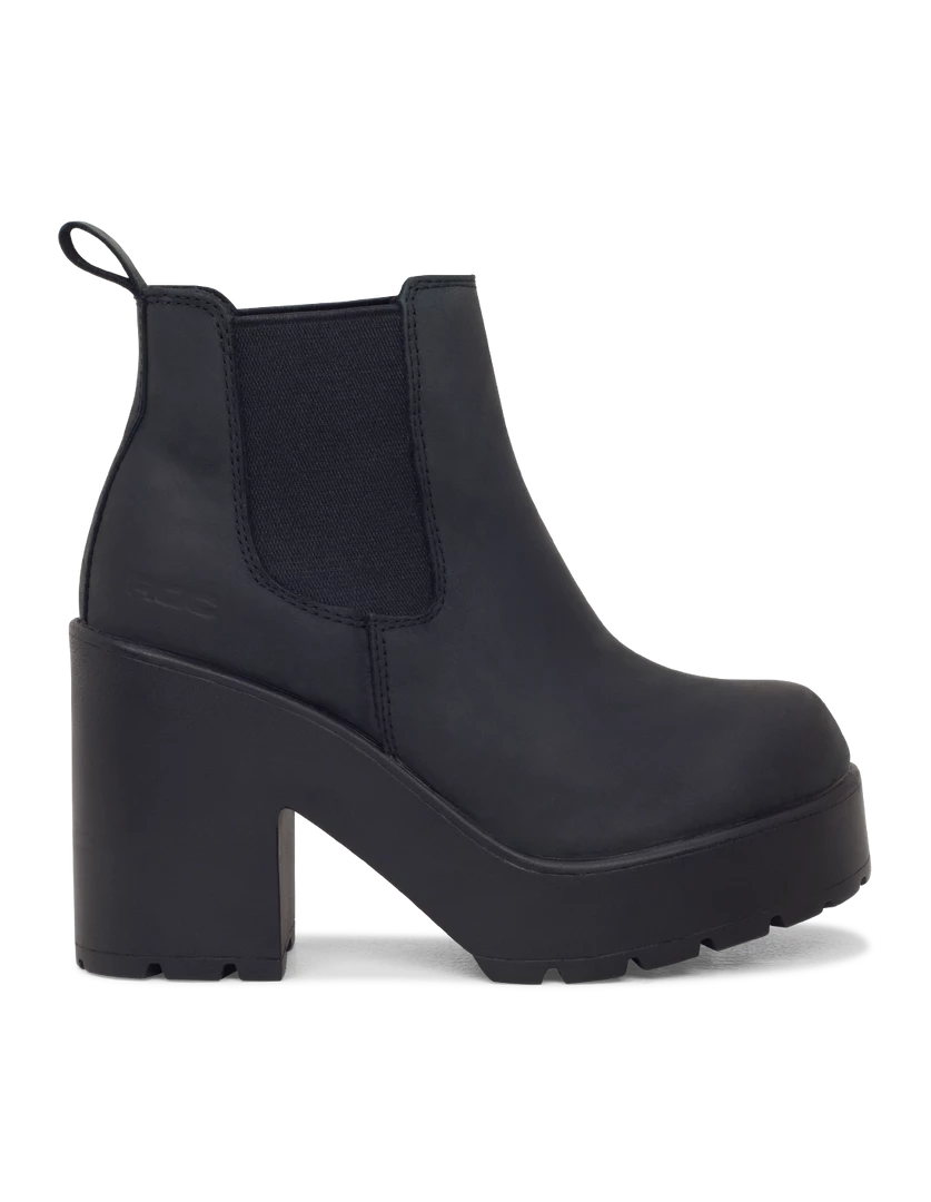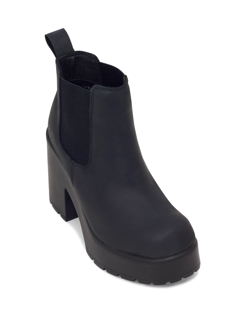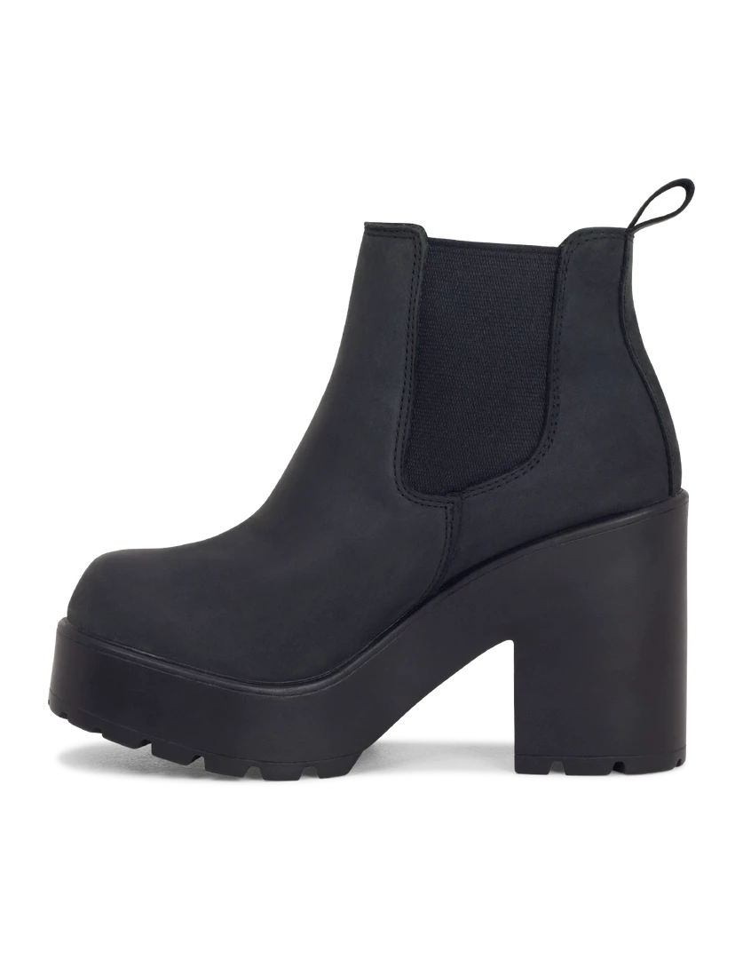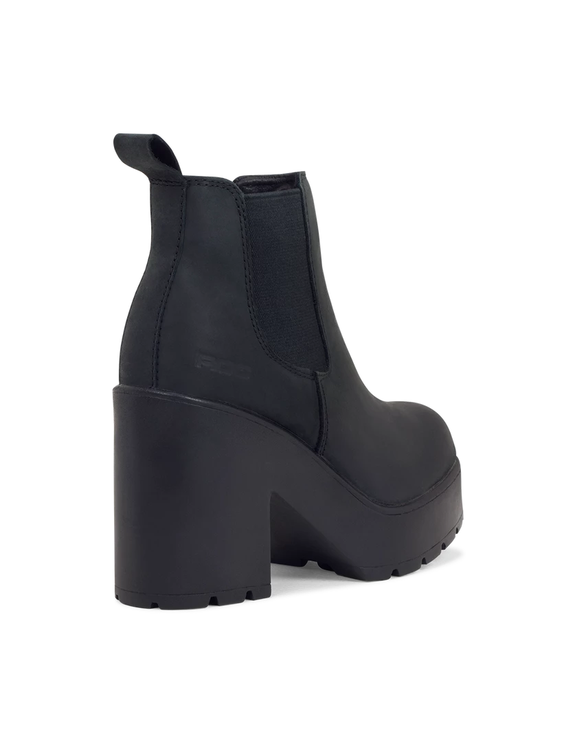 These chunky, elastic-sided boots know how to make a subtle statement- with an edge! Buff-black leather to give that slightly worn, grunge feel.